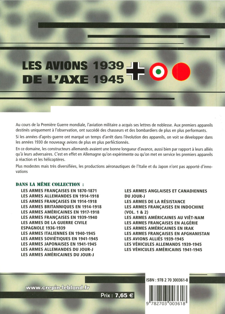 Au cours de la Première Guerre mondiale, l'aviation militaire a acquis ses lettres de noblesse. Aux premiers appareils destinés uniquement à l'observation, ont succédé des chasseurs et des bombardiers de plus en plus performants. Si les années d'après-guerre ont marqué un temps d'arrêt dans l'évolution des appareils, on voit se développer dans les années 1930 de nouveaux avions de plus en plus perfectionnés. En ce domaine, les constructeurs allemands avaient une bonne longueur d'avance, aussi bien par rapport à leurs alliés qu'à leurs adversaires. C'est en effet en Allemagne qu'on expérimente ou qu'on met en service les premiers appareils à réaction et les hélicoptères. Plus modestes mais très diversifiées, les productions aéronautiques de l'Italie et du Japon n'ont pas apporté d'innovations.