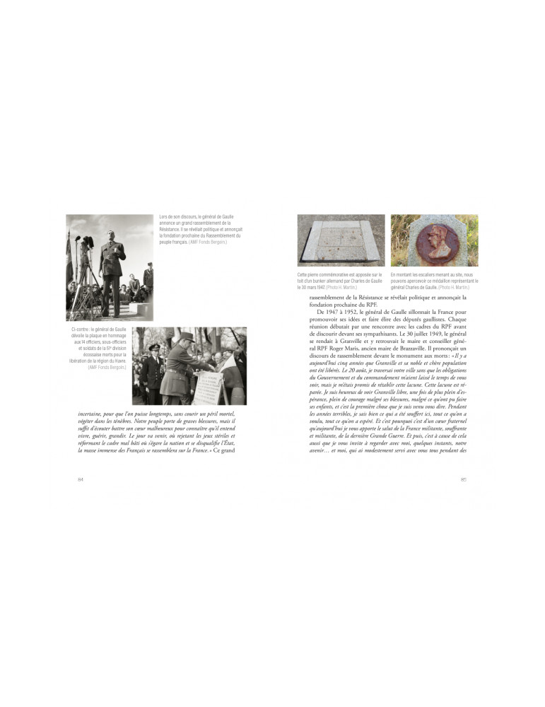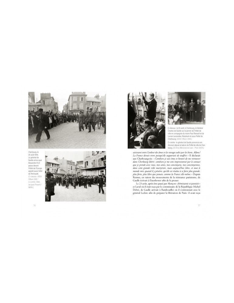 Le destin le ramène en Normandie le 14 juin 1944, lorsqu’il met le pied à Graye-sur-Mer, sur le sol français, et prononce un discours historique à Bayeux quelques heures plus tard, première ville libérée. Il y reviendra, le 16 juin 1946, pour un nouveau discours historique. Entre-temps, il aura accompli d’autres voyages dans une Normandie sinistrée. Ceux-ci seront encore très nombreux, principalement en 1960 et jusqu’en 1967. Il recevra toujours, en terre normande, un accueil enthousiaste, la Basse-Normandie devenant un bastion du gaullisme après 1958. Tous ces voyages nous permettent de le suivre à travers les villes de cette région, grâce aussi à de nombreux documents photographiques.