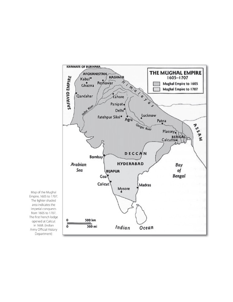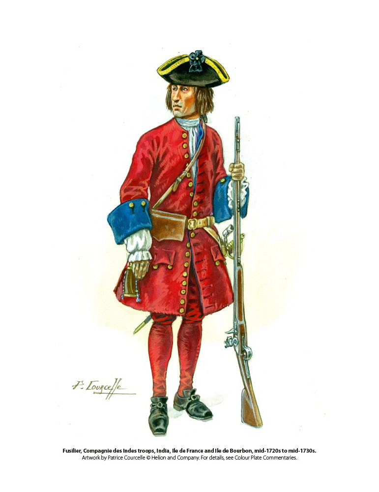 Par la suite, à mesure que la compagnie française se développait et s'impliquait dans la politique de l'empire moghol en ruine en Inde, en particulier sous le règne du visionnaire impérial Dupleix, la Le nombre assez modeste de soldats européens a été considérablement augmenté grâce à l'enrôlement de plusieurs milliers de soldats indiens qui ont reçu une formation, des armes et parfois des uniformes européens. C'est lors de la bataille d'Aydar en 1746 que les soldats et cipayes français de la Compagnie des Indes vainquirent complètement une armée princière indienne bien plus nombreuse, assurant ainsi la domination d'une nation européenne en Inde. Cependant, après un dur combat, cette nation deviendra la Grande-Bretagne grâce au soutien efficace et efficace de son gouvernement, comparé au désintérêt français pour les affaires d'outre-mer à la fin des années 1750. Pondichéry est tombé en 1761, comme le Sénégal en Afrique l'avait fait trois ans plus tôt. La Compagnie des Indes dura cependant encore une décennie jusqu'à ce qu'elle ferme ses comptes en 1770.