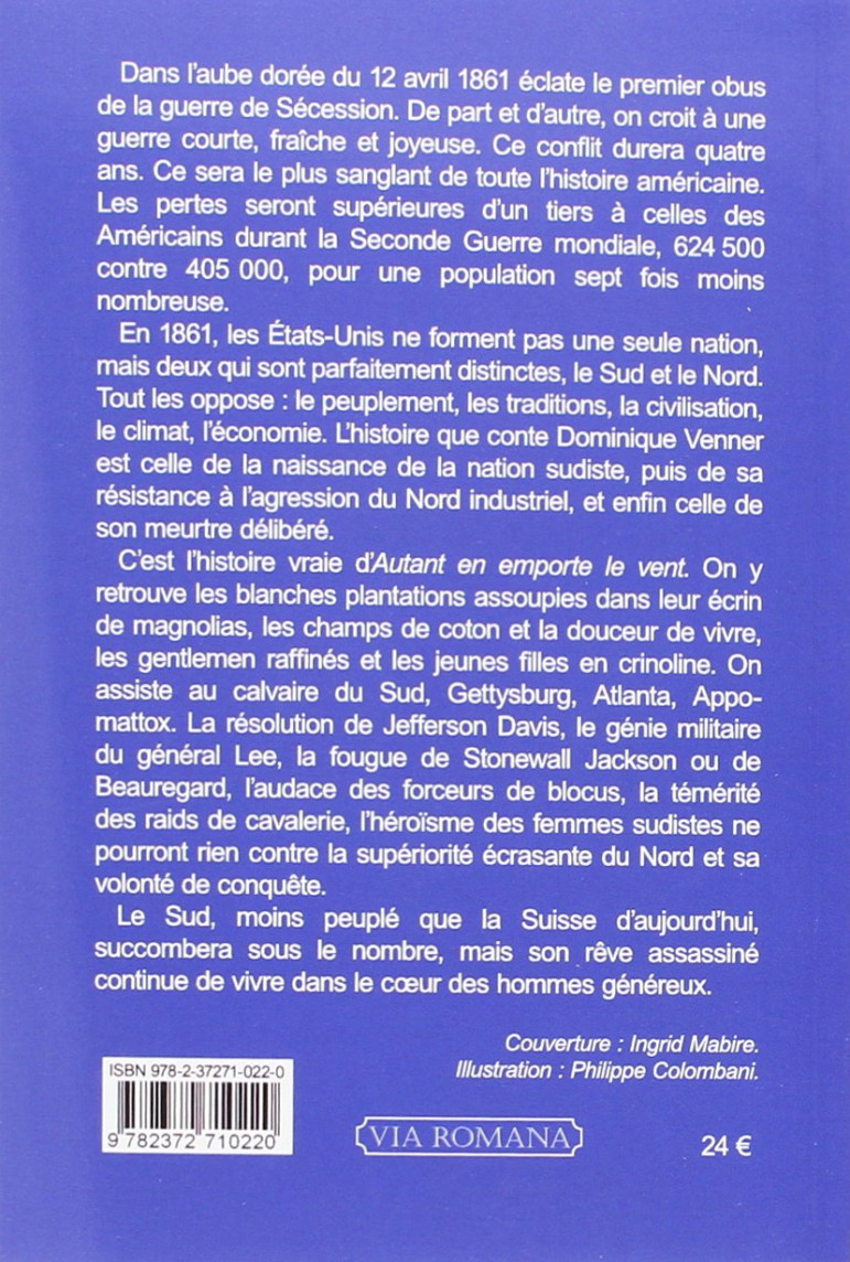 Ce sera le plus sanglant de toute l'histoire américaine. Les pertes seront supérieures d'un tiers à celles des Américains durant la Seconde Guerre mondiale, 618.000 contre 417.000, pour une population sept fois moins nombreuse. En 1861, les États-Unis ne forment pas une seule nation, mais deux qui sont parfaitement distinctes, le Sud et le Nord. Tout les oppose : le peuplement, les traditions, la civilisation, le climat, l'économie. L'histoire que conte Dominique Venner est celle de la naissance de la nation sudiste, puis de sa résistance à l'agression du Nord industriel, et enfin celle de son meurtre délibéré.