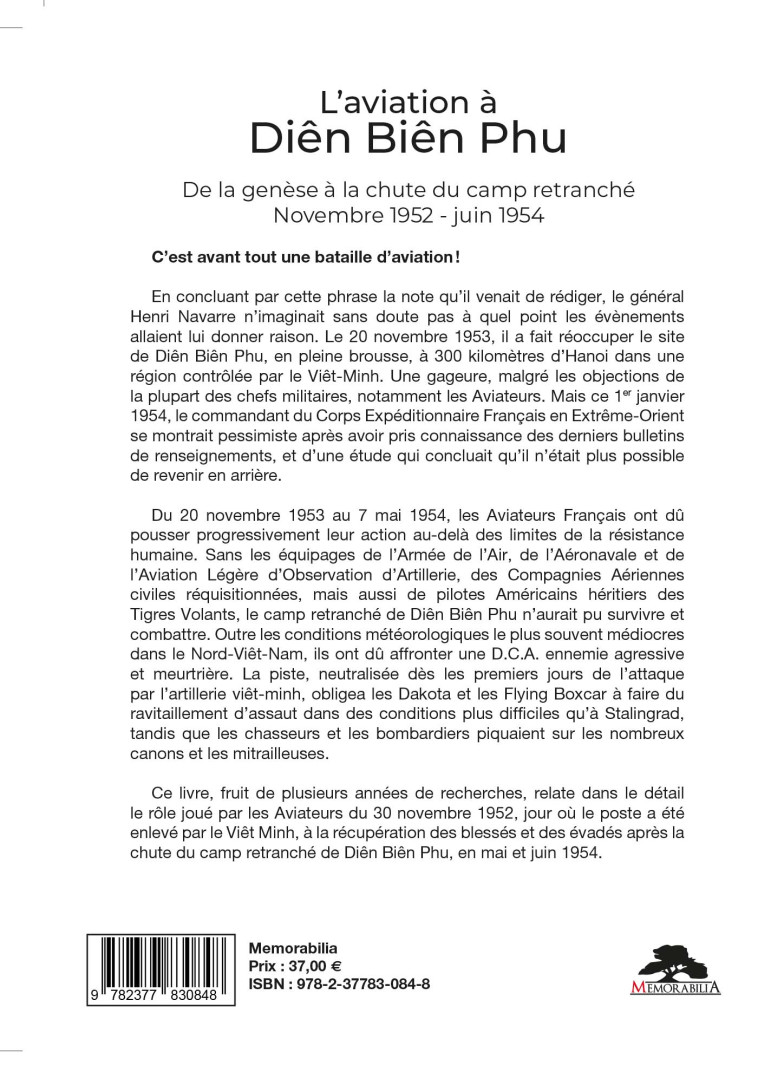 Ce livre, fruit de plusieurs années de recherches, relate dans le détail le rôle joué par les Aviateurs du 30 novembre 1952, jour où le poste a été enlevé par le Viêt-Minh, à la récupération des blessés et des évadés après la chute du camp retranché de Diên Biên Phu, en mai et juin 1954.