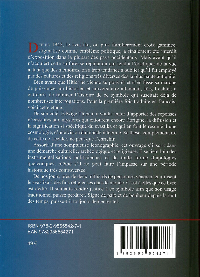 Assorti d'une somptueuse iconographie, cet ouvrage s'inscrit dans une démarche culturelle, archéologique et religieuse. Il se tient loin des instrumentalisations politiciennes et de toute forme d'apologies quelconques, même s'il ne peut faire l'impasse sur une période historique très controversée. De nos jours, près de deux milliards de personnes vénèrent et utilisent le svastika à des fins religieuses dans le monde. C'est à elles que ce livre est dédié. Il souhaite rendre justice à ce symbole afin que son usage traditionnel puisse perdurer. Signe de paix et de bonheur depuis la nuit des temps, puisse-t-il toujours demeurer tel.