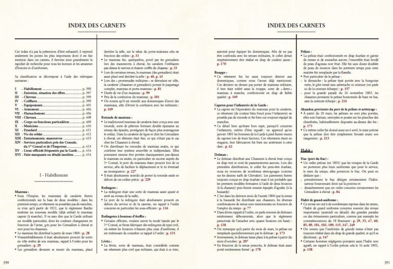 En publiant ces carnets, nous avons respecté les tournures de phrases quelques fois approximatives utilisées dans le texte original, ainsi que certains mots n’existant plus aujourd’hui ; nous nous sommes simplement autorisé quelques corrections orthographiques et nous avons vérifié la bonne chronologie des textes. À la suite, nous trouverons dans un premier temps, une chronologie historique, reprenant la situation de Bonaparte et de certains évènements mis en parallèle avec les dates citées dans les cahiers. Ce travail permettra de suivre au plus près l’emploi du temps de l’unité par rapport à la vie politique du pays. Nous aborderons ensuite une rétrospective des décrets et ordres divers traitant de la cavalerie de la Garde des Consuls, ces textes complétant par des informations officielles le contenu des carnets. Nous poursuivrons cette publication en donnant les états de service des officiers cités dans les carnets : notons qu’il existe quelques lacunes, les archives de la guerre ne possédant pas (ou plus) les dossiers de certains militaires. Vincent Bourgeot Préface de Michel Kerautret, plus de 400 pages de documentation jamais publiée, illustrations inédites, états de services et index.
