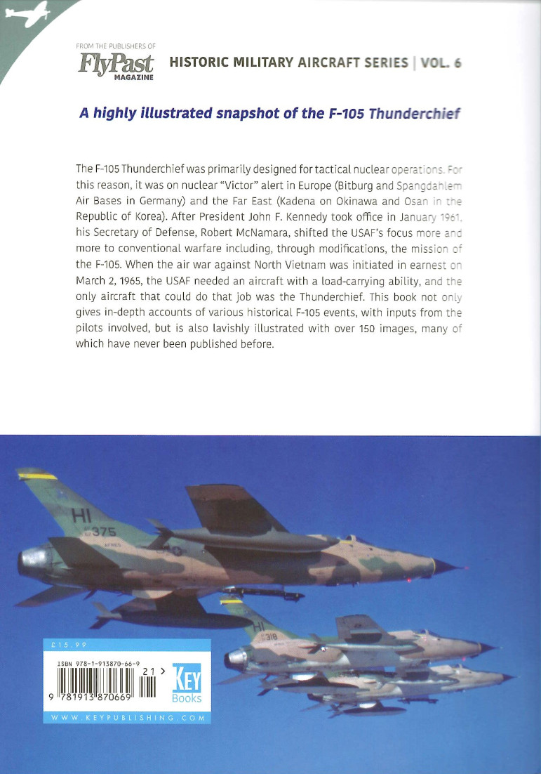Ce livre donne non seulement des récits détaillés de divers événements historiques du F-105, avec les contributions des pilotes impliqués, mais est également abondamment illustré de plus de 150 images, dont beaucoup n'ont jamais été publiées auparavant.