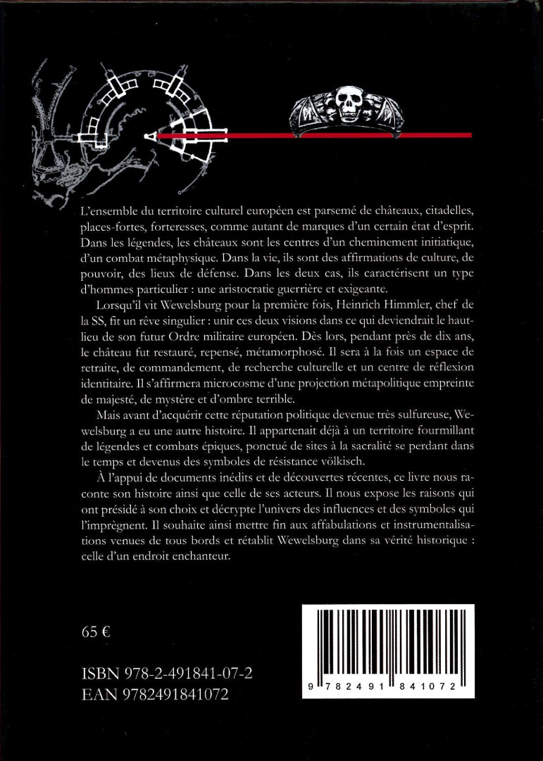 Lorsqu’il visita Wewelsburg pour la première fois en 1933, Heinrich Himmler, chef de la SS, fit un rêve singulier : unir ces deux visions dans ce qui deviendrait le haut lieu de son futur Ordre militaire européen. Dès lors, pendant près de dix ans, le château fut restauré, repensé, métamorphosé. Il sera à la fois un espace de retraite, de commandement, de recherche culturelle et un centre de réflexion identitaire. Il s’affirmera microcosme d’une projection métapolitique prodigieuse empreinte de majesté de mystère et d’ombre terrible.