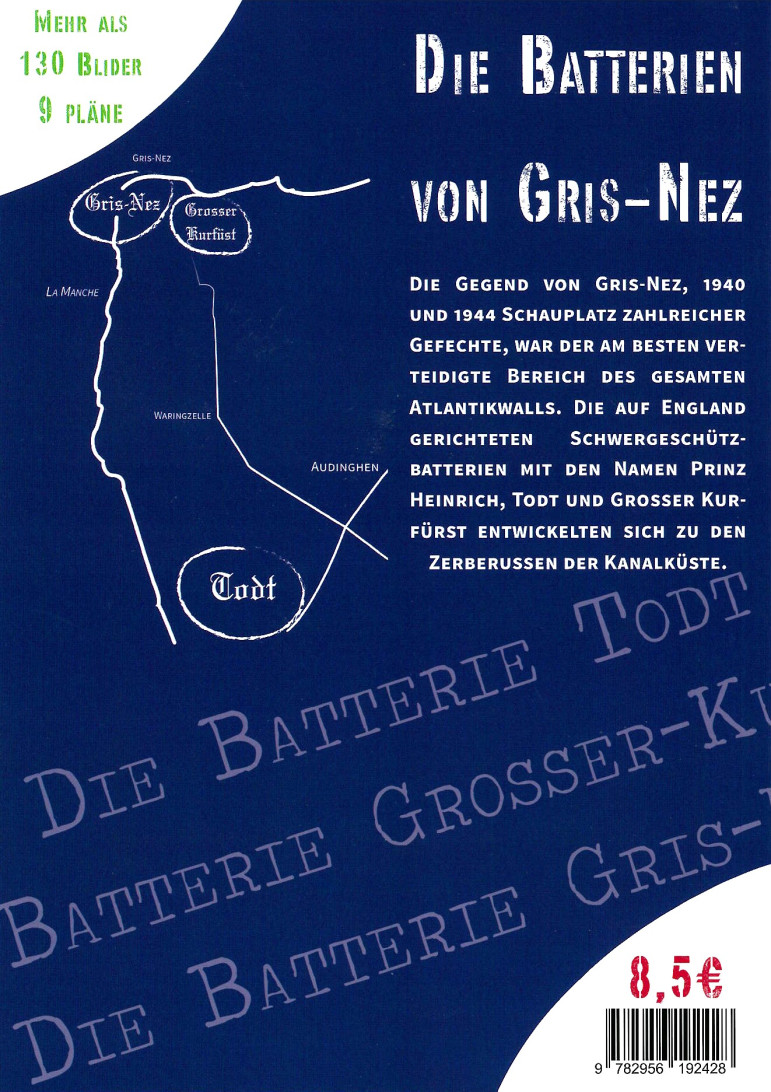 Die ganze Geschichte der Batterien von Cap Gris-Nez: Todt, Grosser-Kurfürst und Gris-Nez. Mehr als 130 historische Fotos und 9 Diagramme sind in diesem 56-seitigen Werk von Alain Chazette, Historiker mit Spezialisierung auf den Atlantikwall bei Editions de la Batterie Todt, vereint. Darüber hinaus ist ein Kapitel über das Museum mit einigen ausgewählten Fotos vorhanden.