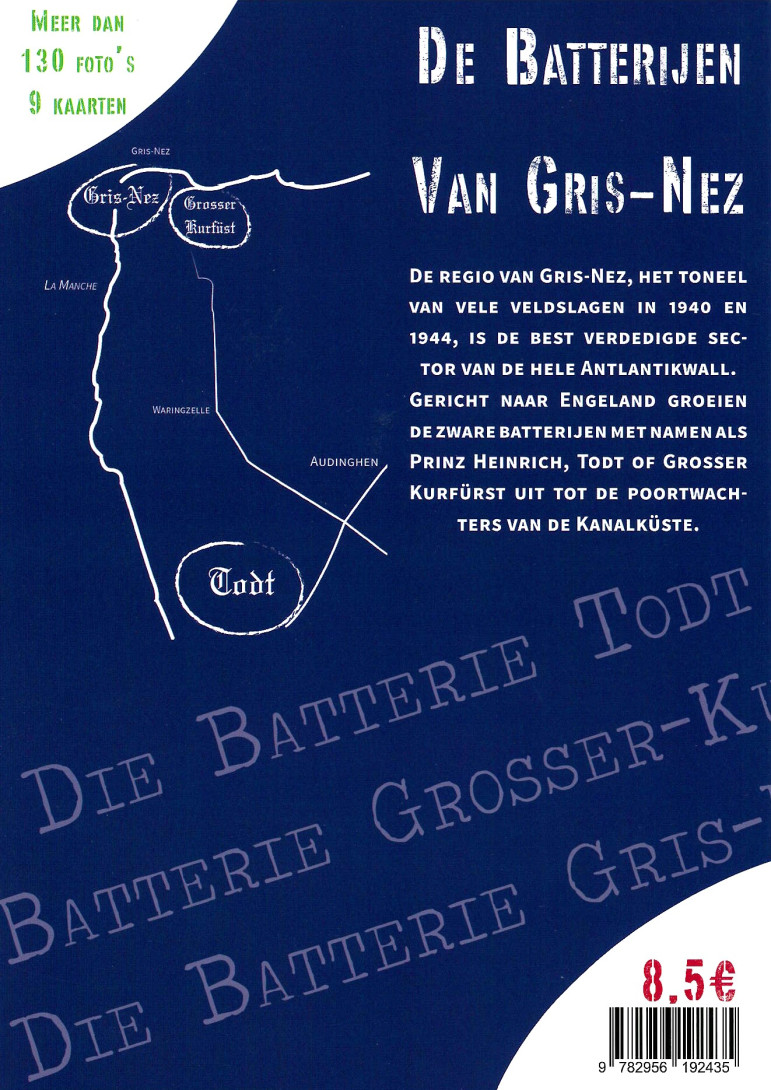 De hele geschiedenis van de Cap Gris-Nez-batterijen: Todt, Grosser-Kurfürst en Gris-Nez. Meer dan 130 historische foto's en 9 diagrammen zijn samengebracht in dit 56 pagina's tellende werk van Alain Chazette, historicus gespecialiseerd in de Atlantikwall bij Editions de la Batterie Todt. Daarnaast is een hoofdstuk over het museum met enkele geselecteerde foto's aanwezig.