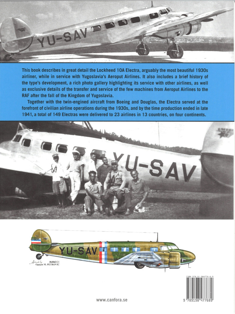 Ce livre décrit en détail le Lockheed 10A Electra, sans doute le plus bel avion de ligne des années 1930, alors qu'il était en service avec la compagnie aérienne yougoslave Aeroput. Il comprend également un bref historique du développement du type, une riche galerie de photos mettant en évidence son service avec d'autres compagnies aériennes, ainsi que des détails exclusifs sur le transfert et le service des quelques machines d'Aeroput Airlines à la RAF après la chute du Royaume de Yougoslavie.