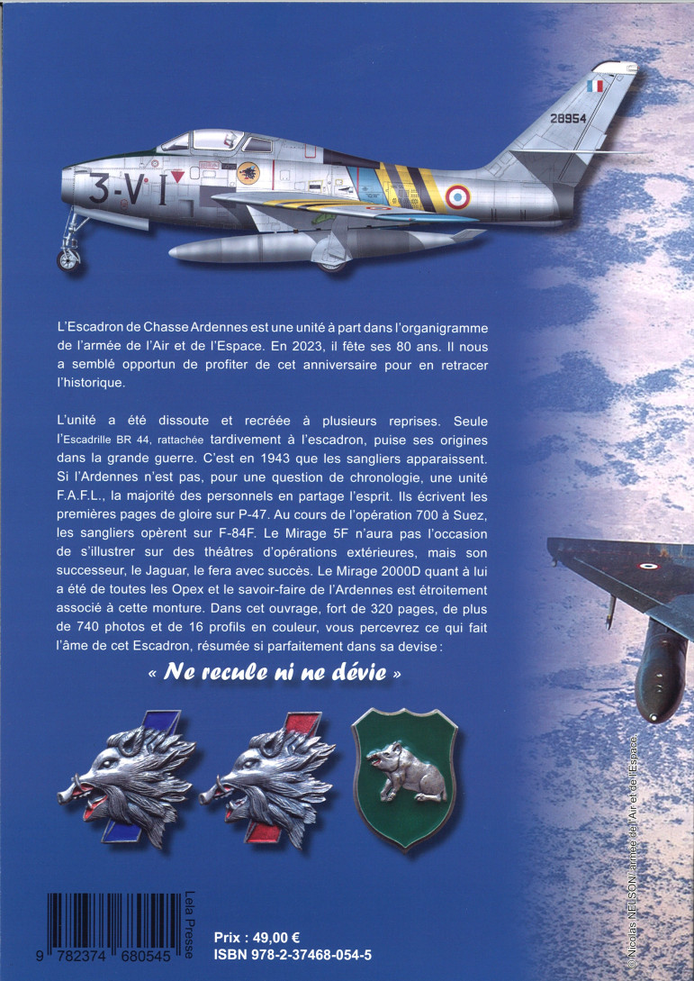 Dans cet ouvrage, fort de 320 pages, de plus de 740 photos couleur et n&b, et de 16 profils en couleur, vous percevrez ce qui fait l’âme de cet Escadron, résumée si parfaitement dans sa devise : « Ne recule ni ne dévie »