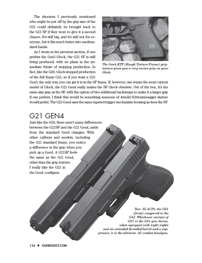À l’intérieur, vous trouverez une couverture complète et des informations sur les tests pour tous les modèles Glock, y compris les mises à jour Gen5, les variantes réservées aux forces de l’ordre/militaires, les Glocks personnalisés et les modèles jamais proposés aux États-Unis. Tout est là ! Chaque modèle, chaque calibre, chaque variante et chaque génération, du premier prototype jusqu'aux développements réalisés en 2019.