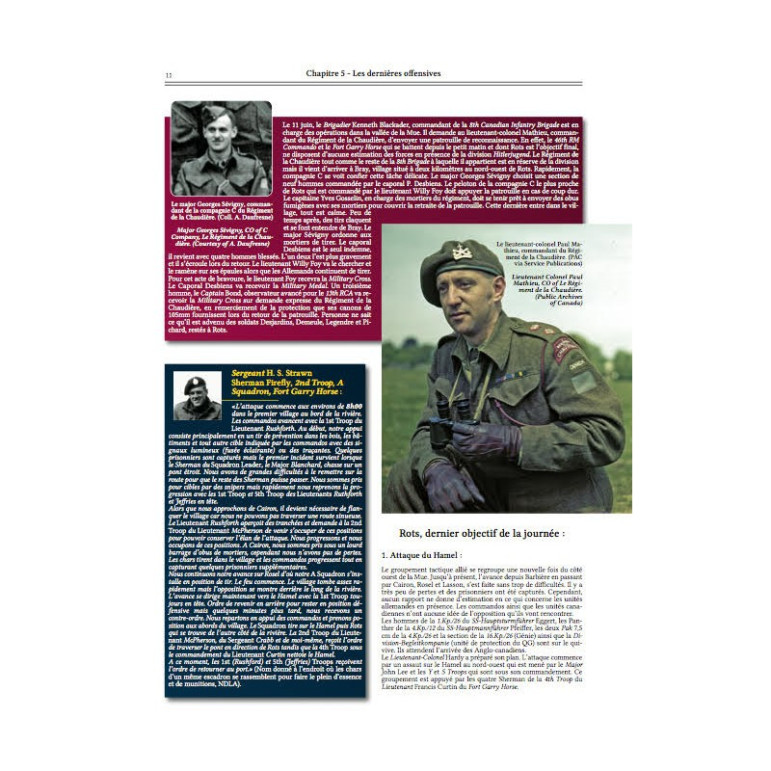 L’auteur : Natif de Caen. Frederick Jeanne a grandi dans le village de Rots et ses environs, théâtres de terribles combats en juin 1944. Titulaire d'une Licence d'Histoire obtenue à l'Université de Caen en 2011, il a écrit 2 livres de référence de plus de 400 pages, co-écrit 3 autres ouvrages et signé de très nombreux articles consacrés à la participation des forces canadiennes à la Bataille de Normandie. Ses voyages au Canada lui ont permis d'établir des liens étroits avec de nombreux vétérans et leurs familles ainsi qu'avec des associations régimentaires, lui garantissant un accès privilégié à des sources souvent inédites, toujours pertinentes.