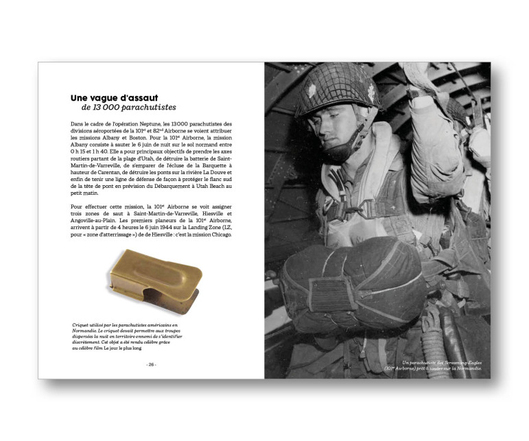 Ce beau livre format poche, issu de la collection Tiny Book, est dédié aux missions des parachutistes américains qui dans la nuit du 5 au 6 juin 1944 ont sauté au-dessus du département de la Manche, sur les zones de Sainte-Mère-Église et de Utah Beach.
