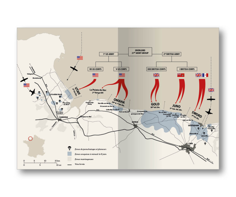 Imaginés comme des essentiels, ces livres au format poche ont été conçus pour expliquer aux lecteurs les événements majeurs du 6 juin 1944 et leur fournir des informations historiques accessibles, condensées et richement illustrées de photographies d’époque. En plus des textes relatant les opérations alliées, les lecteurs trouveront dans ces livres : une cartographie de l’avancée des troupes alliées le 6 juin 1944, des photographies emblématiques des lieux et des objets du Débarquement.