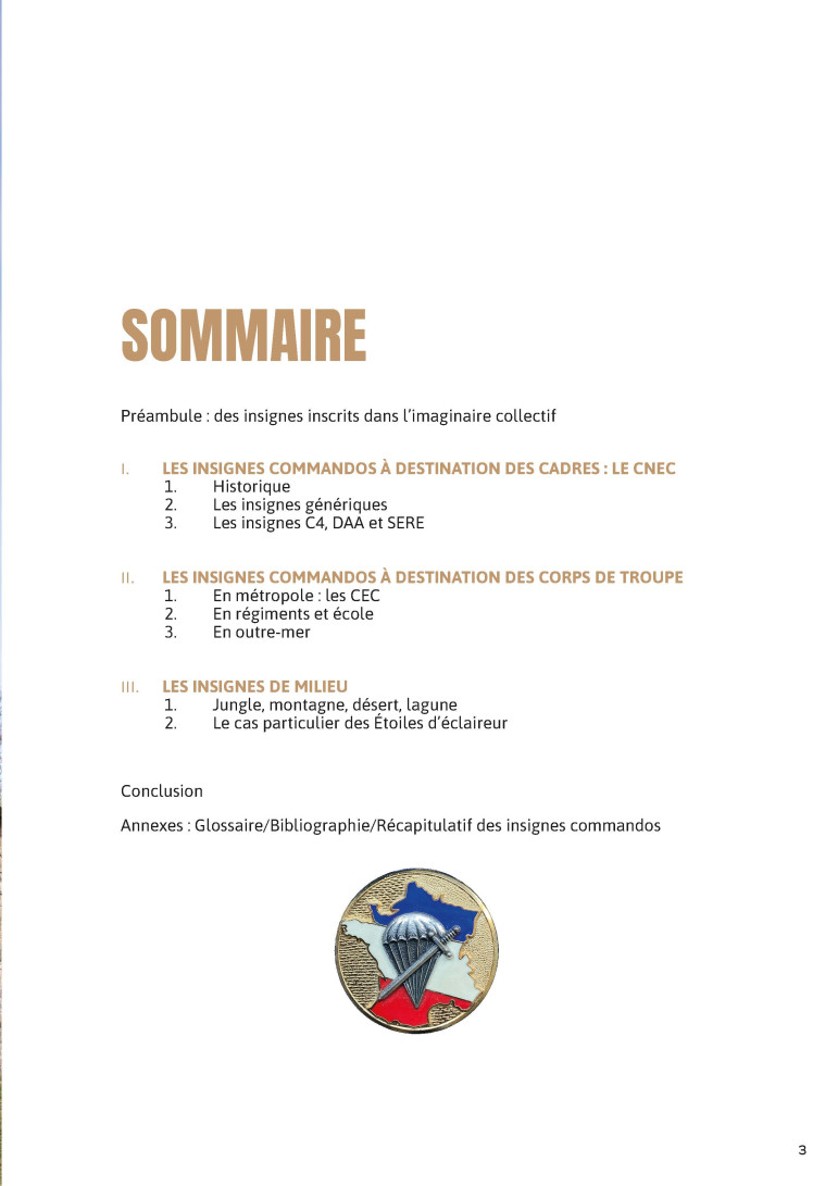 Cet ouvrage évoque l’histoire des 104 insignes commandos homologués par le Service