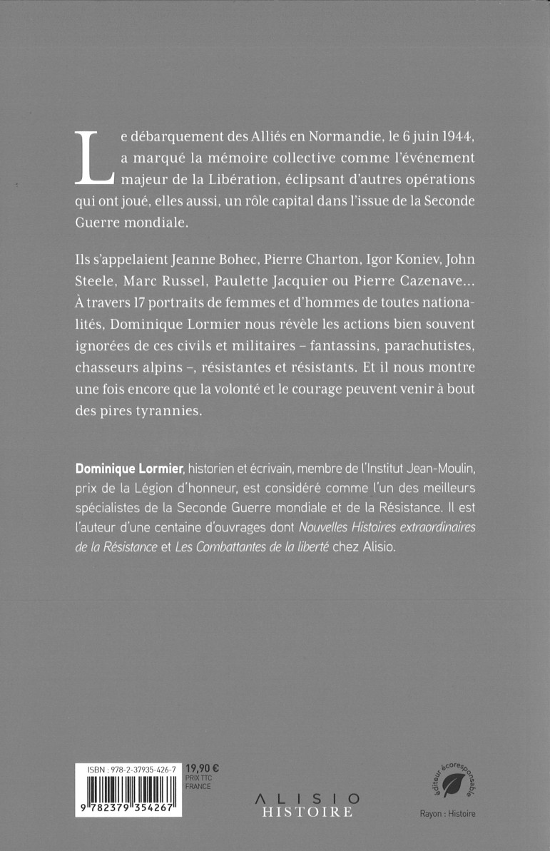 Ils s’appelaient Jeanne Bohec, Pierre Charton, Igor Koniev, John Steele, Marc Russel, Paulette Jacquier ou Pierre Cazenave… À travers 17 portraits de femmes et d’hommes de toutes nationalités, Dominique Lormier nous révèle les actions bien souvent ignorées de ces civils et militaires – fantassins, parachutistes, chasseurs alpins –, résistantes et résistants. Et il nous montre une fois encore que la volonté et le courage peuvent venir à bout des pires tyrannies.