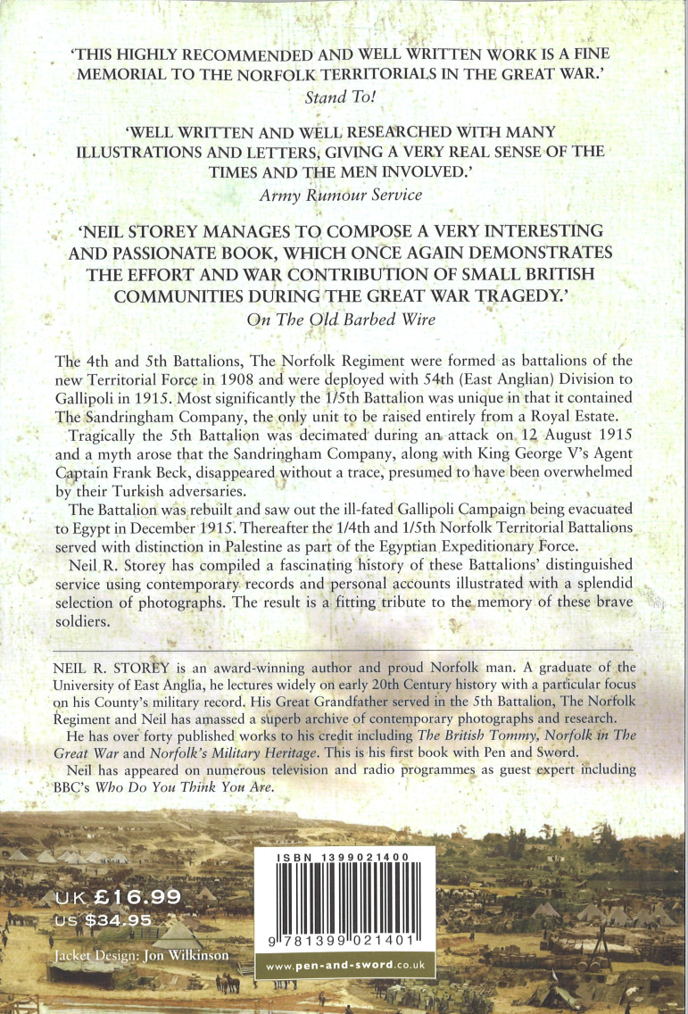 Les 4e et 5e bataillons du Norfolk Regiment ont été formés au début de la Grande Guerre dans le cadre de la Force territoriale et déployés avec la 54e division (East Anglian) à Gallipoli en 1915. Plus important encore, le 1/5e bataillon était unique en ce sens, il contenait la Sandringham Company, la seule unité à être entièrement issue d'un domaine royal.