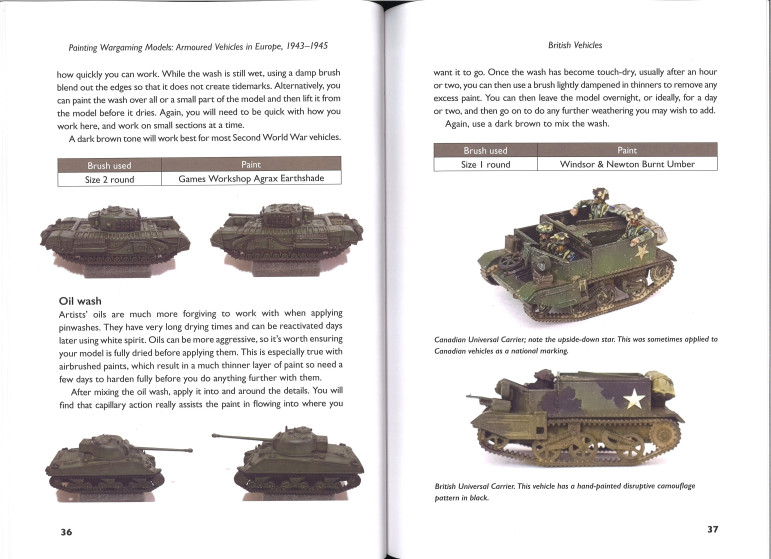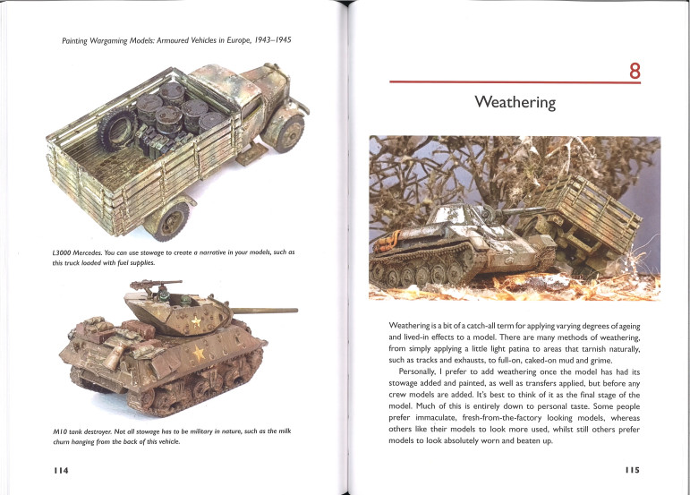 Andy commence par discuter des outils et du matériel nécessaires et explique quelques techniques de base, telles que le brossage à sec et le pointillé. Il passe ensuite à des instructions détaillées, étape par étape, pour les principaux schémas de peinture de chacun des principaux combattants, britanniques, américains, allemands et soviétiques.