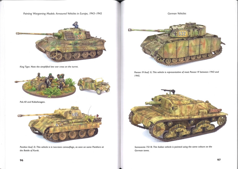 Chaque étape est illustrée par une photo couleur, le numéro de peinture ainsi que le type et la taille du pinceau utilisé. Il existe des variantes à utiliser avec ou sans aérographe. L'ajout d'emblèmes nationaux et d'autres marquages, à main levée ou par transfert, est également couvert. En plus du schéma de peinture de base, il existe des conseils pour ajouter des effets d'altération et d'usure, tels que de la poussière, de la peinture écaillée ou même du badigeon d'hiver.