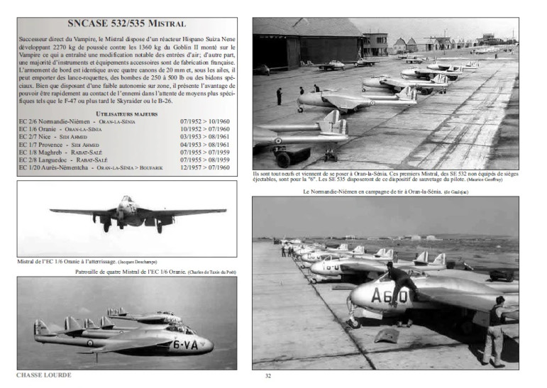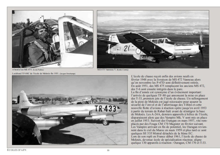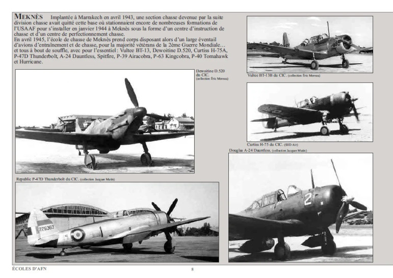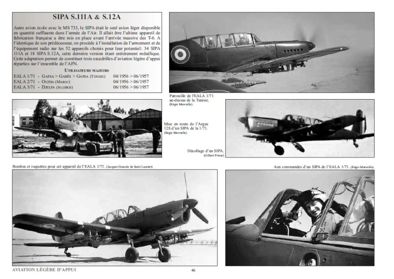 Les chapitres suivants présentent les divers types d’appareils ‘selon la classification utilisée à l’époque) ainsi que les périodes au cours desquelles les unités concernées les ont mis en œuvre lors des opérations de maintien de l’ordre. Du P-39 Airacobra au Vautour II, en passant par des appareils aussi peu connus que le Goéland, le Vanneau, le Fennec, le Toucan, le MS.72, le Languedoc, le LeO 453 ou le Bloch 161, ce sont près d’une quarantaine d’avions qui sont évoqués, avec une iconographie d’une richesse exceptionnelle.