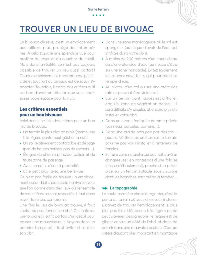 Une fois sur le terrain, apprenez à trouver le lieu où planter votre tente, mais aussi à bien installer votre campement et à vivre dans le respect de votre environnement. Enfin, découvrez quelques idées de rando/bivouac pour savoir où partir pour vos premières aventures !