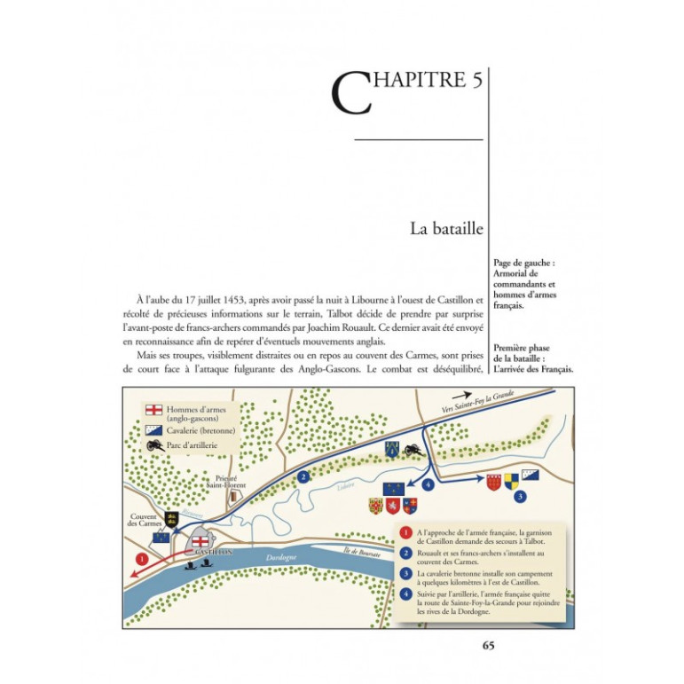 Le 17 juillet 1453 marque un tournant décisif dans l'Histoire de France. Devant la place forte de Castillon, soutenues par les cavaliers de Pierre II duc de Bretagne, les troupes de Charles VII commandées par Jean de Bueil et les frères Bureau se confrontent une dernière fois aux forces anglo-gasconnes dirigées par un capitaine expérimenté, mais vieillissant, John Talbot.