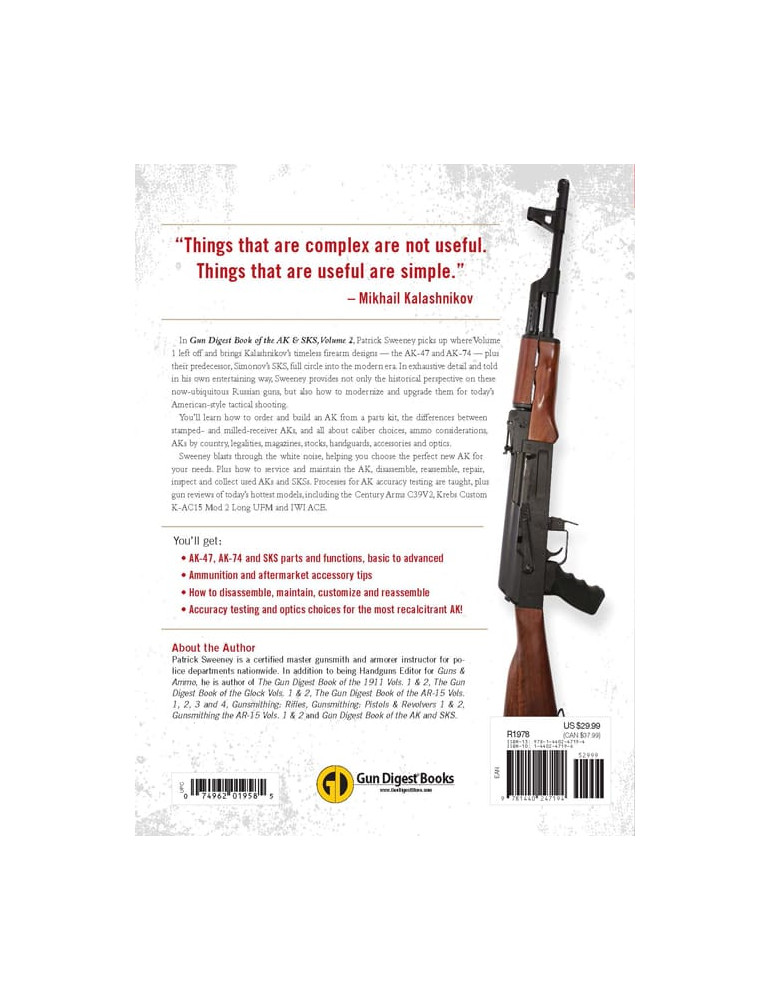 Le très attendu Gun Digest Book sur l'AK & SKS Volume 2 ramène les conceptions intemporelles des armes à feu de l'ère soviétique à l'ère moderne. Habilement écrite par le maître armurier Patrick Sweeney, cette ressource est un incontournable pour tout tireur sérieux avec des armes à feu soviétiques. Et c’est le meilleur guide pour tous ceux qui recherchent une connaissance complète des armes russes omniprésentes et comment les améliorer et les moderniser pour le tir tactique de style américain d’aujourd’hui.