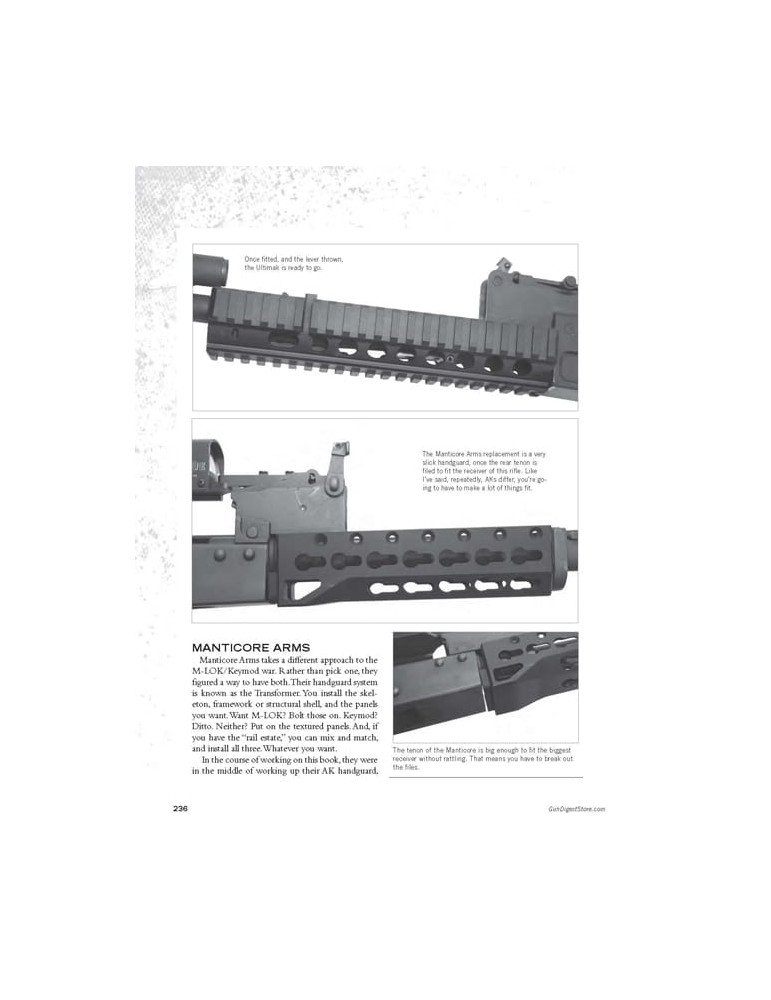 Sweeney offre également aux fans de fusils russes l’expertise nécessaire pour se démarquer du bruit blanc du marché actuel des armes à feu et des accessoires. L'auteur passe en revue les nouveaux modèles les plus en vogue, notamment le Century Arms C39V2, le Krebs Custom K-AC15 Mod 2 Long UFM et l'IWI ACE. Et il catalogue les meilleures améliorations disponibles pour l'AK et le SKS, les faisant fonctionner comme des pur-sang.