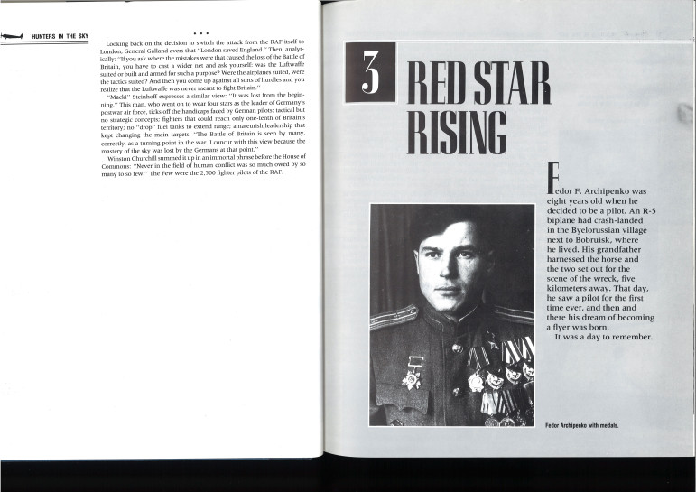 Ce livre contenant nombreuses images donne le point de vue d'as américains, britanniques, russes, polonais et japonais.