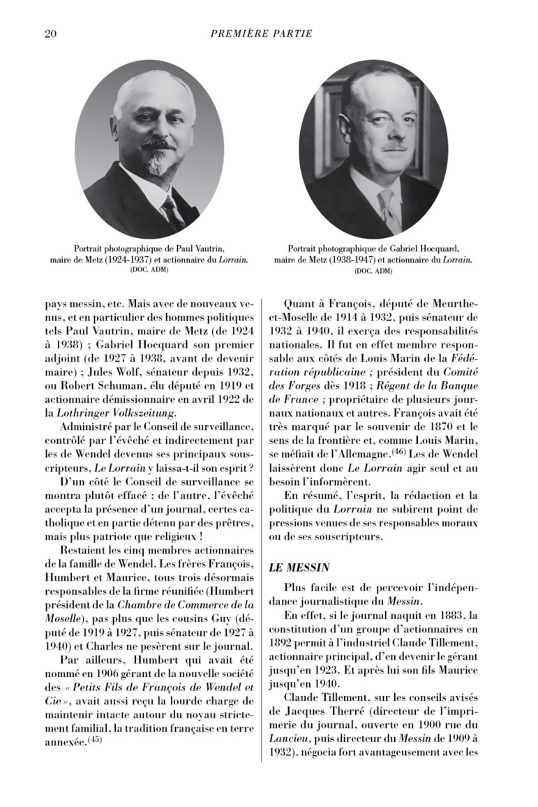 Durant le temps de l’annexion à l’Allemagne (1870-1918), Metz et une partie de la Lorraine, annexées, furent représentées par une Presse Messine, composée du Lorrain et du Messin. Une presse d’opinion identitaire, francophone, francophile, patriote et protestataire. Après le retour à la France en 1918 et face à l’Allemagne, cette même presse devint alors la sentinelle de la France recouvrée.