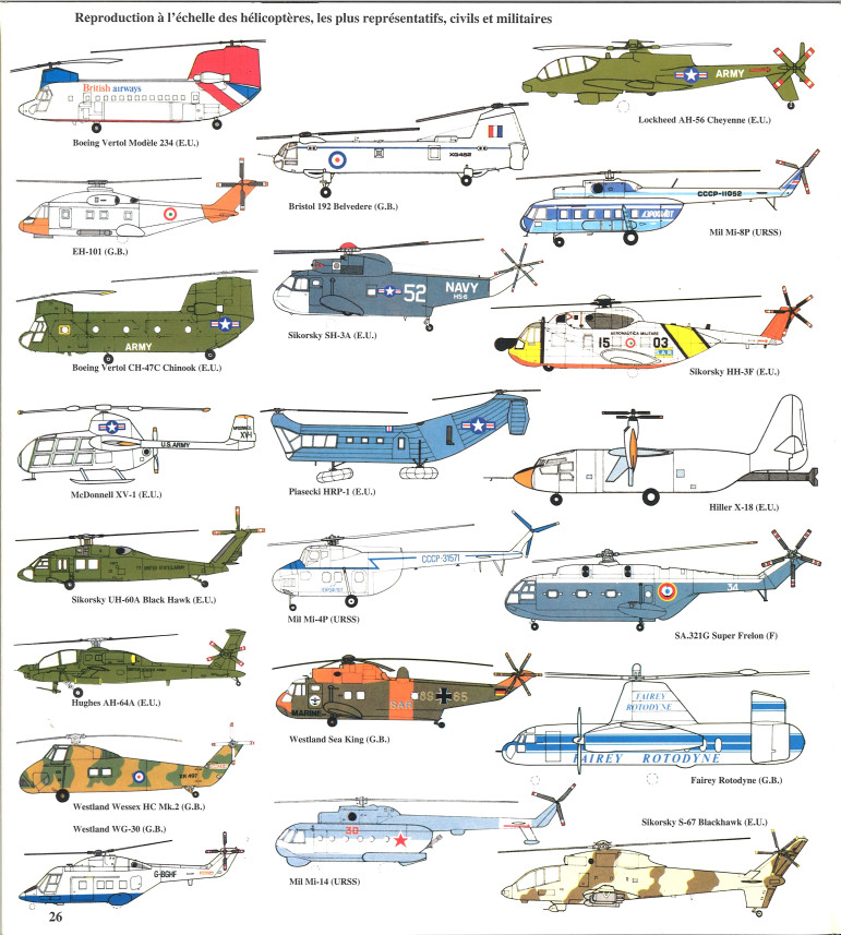 Les hélicoptères civils et militaire, encyclopédie mondiale. Une documentation complète illustrée par des photos, des profils couleur et des vues 3D.