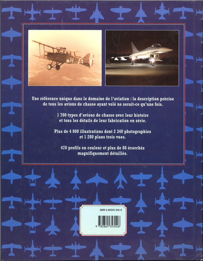L'encyclopédie illustrée de tous les avions de chasse et tous les détails de leur fabrication. Superbe ouvrage de plus de 3 kg, en français, richement illustré de très nombreuses photos n&b et couleur, profils couleur, planches éclatés d'avions avec tous les détails intérieur.