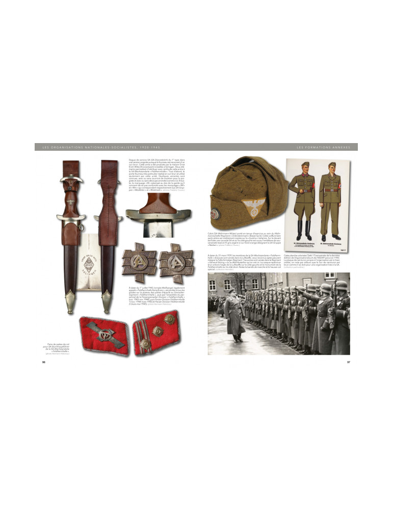 De la NSDAP au Postchutz, de la SA à la Croix Rouge, de la HJ au NSBO, du NSKK au Kultursenat, etc., le parti nazi avait quadrillé toute la société allemande. Nous découvrirons ici une documentation précise sur ce que l’on croit connaître mais aussi sur des organisations dont on connaît, au mieux, le nom. Cette véritable encyclopédie est accompagnée d’un millier d’illustrations, en noir et blanc et en couleur : photos d’époque, mais aussi — en couleur — insignes, pièces d’uniforme, dagues et équipements. Indispensable pour le passionné d’histoire qui veut savoir, le chercheur mais aussi le collectionneur.