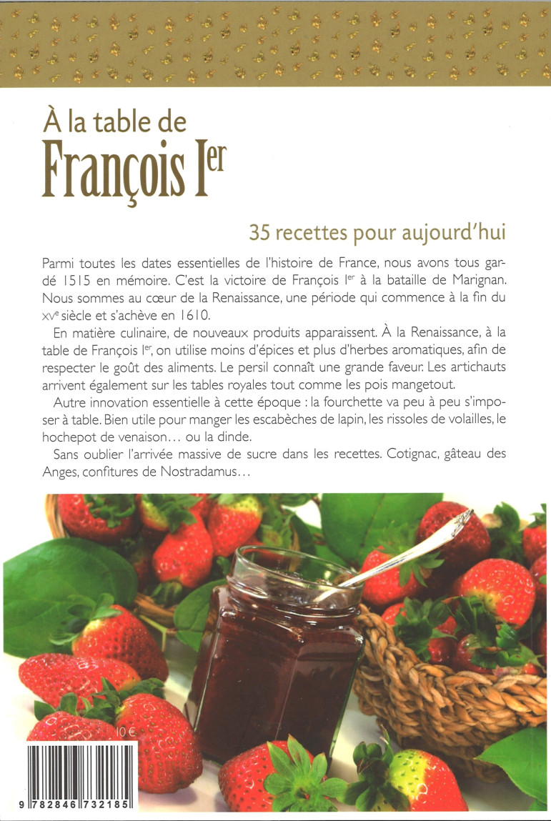 Les éditions Ysec vous proposent de passer à table en compagnie de François Ier. Plus précisément cet ouvrage vous propose 35 recettes en vogue à la Renaissance. Vous pourrez ainsi réaliser aisément des menus inspirés des recettes élaborés au XVIe siècle.