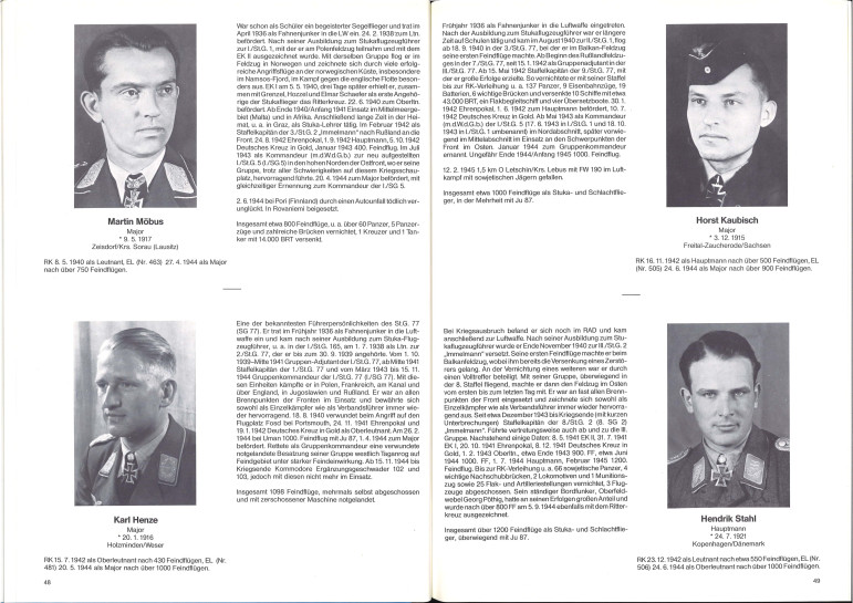 Cet ouvrage rare répertorie les pilotes de Stukas et d'avions d'assaut de la Luftwaffe récipiendaires de la Ritterkreuz (Croix de fer de chevalier).