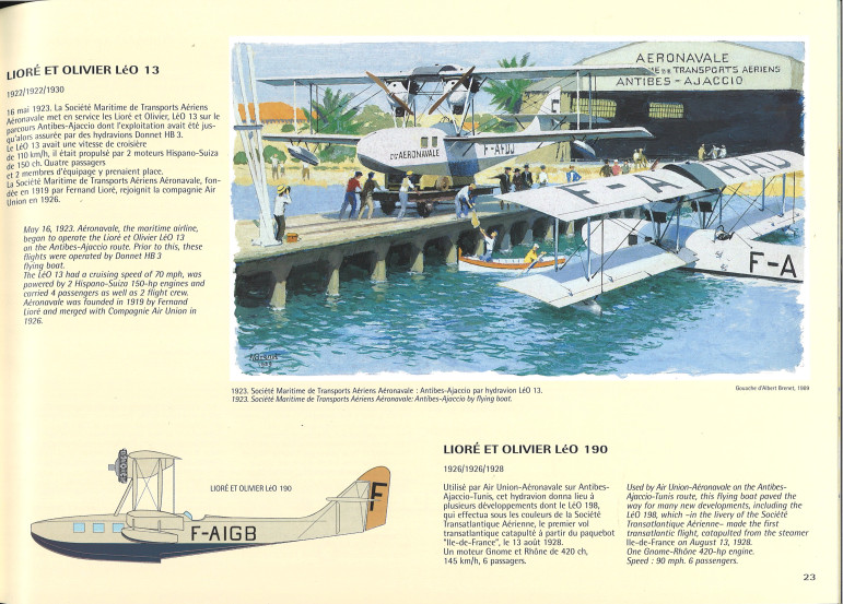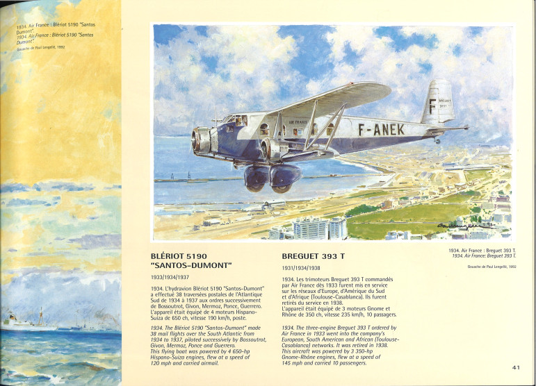 A Century of Aviation with Air France features more than 150 aircraft with descriptive textes and superb gouache illustrations by Albert Brenet, Paul Lengellé, Philippe Mitschké, Lucio Perinotto and James Prunier. The book traces the history of air transport from 1909 to the present day throught the various companies who have made civil aviation what is today. Its recounts the extraordinary adventure of these marvelous machines, from the Breguet XIV to the latest Airbus, via the mythical planes of Mermoz, Guillaumet, Saint-Exupéry, Dagnaux and Noguès.