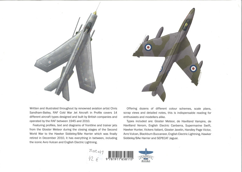 Écrit et illustré par le célèbre artiste aéronautique Chris Sandham-Bailey, RAF Cold War Jet Aircraft in Profile couvre 14 types d'avions différents conçus et construits par des entreprises britanniques et exploités par la RAF entre 1945 et 2010.