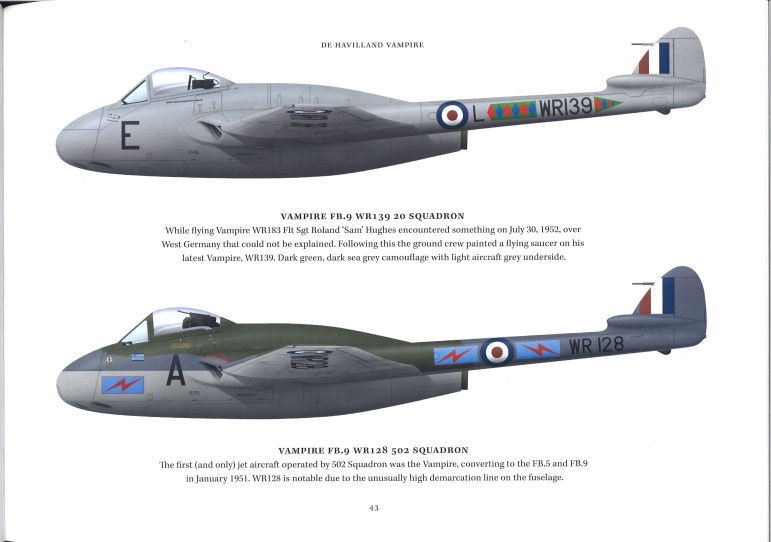 Les types inclus dans les avions de la guerre froide sont : Gloster Meteor, de Havilland Vampire, de Havilland Venom, English Electric Canberra, Supermarine Swift, Hawker Hunter, Vickers Valiant, Gloster Javelin, Handley Page Victor, Avro Vulcan, Blackburn Buccaneer, English Electric Lightning, Hawker. Siddeley Harrier et SEPECAT Jaguar.