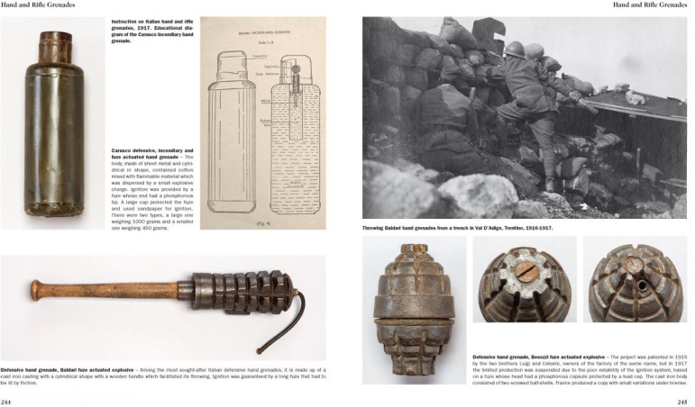 Ce double volume richement illustré présente, à travers plus de 500 armes, équipements, protections, insignes et décorations, les changements que l'armée italienne a connus pendant la guerre. En 14 chapitres, rédigés par 15 auteurs différents, l'évolution des armes de poing (pistolets et mitraillettes courts, longs) ainsi que l'introduction progressive des grenades à main et à fusil sont retracées en détail.