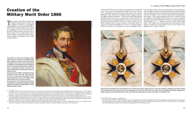 La monographie richement illustrée sur l'Ordre du Mérite militaire bavarois de 1866 ne peut paraître dans cette ampleur que grâce à des sources archivistiques presque intégralement conservées des Archives centrales de l'État de Bavière. L'ordre compte probablement parmi les plus beaux et les plus appréciés de Bavière et a été conçu sous la régence du roi Louis II et sa supervision artistique des plus exigeantes - comme pour ses châteaux.
