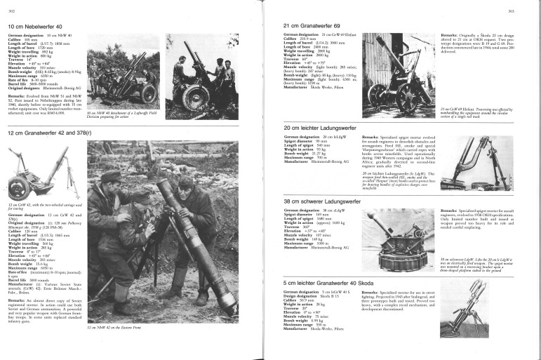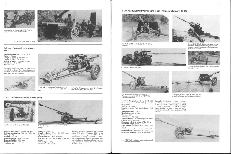 Chaque section contient toutes les armes utilisées par les forces allemandes, y compris les canons de fabrication étrangère et le matériel capturé, ainsi que les développements expérimentaux.