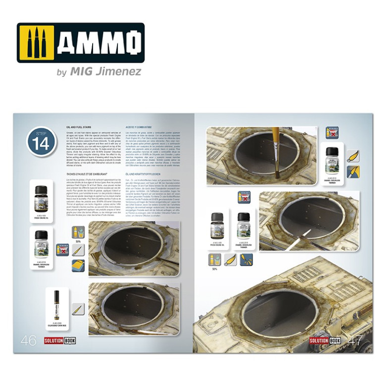 Comment peindre le D.A.K. allemand de la Seconde Guerre mondiale Véhicules SOLUTION BOOK ainsi, un guide complet de 55 pages avec des tutoriels étape par étape en quatre langues dont l'anglais, l'espagnol, le français et l'allemand. Chaque page explique comment appliquer les différentes couleurs et effets communs aux véhicules militaires allemands opérant sur le théâtre nord-africain pendant la Seconde Guerre mondiale. SOLUTION BOOK est un guide simple et basique destiné à aider tout maquettiste à obtenir facilement des résultats similaires à ceux présentés dans chaque exemple. Peu importe si le lecteur est un novice ou un maquettiste plus expérimenté, en suivant les étapes de ce guide, vous pourrez obtenir des résultats étonnants avec les méthodes efficaces et efficaces présentées.