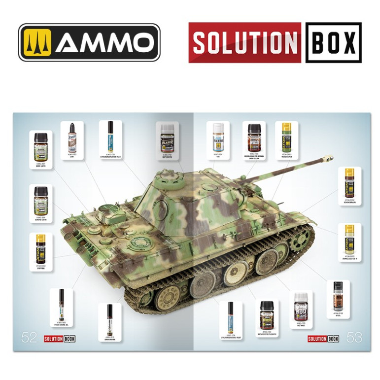 Ce livre contient des textes explicatifs en quatre langues (anglais, espagnol, français et allemand) et constitue un guide simple de 60 pages facile à suivre. Il explique étape par étape comment peindre et appliquer les effets de vieillissement les plus courants sur les véhicules militaires allemands dotés d'un camouflage de la fin de la Seconde Guerre mondiale.