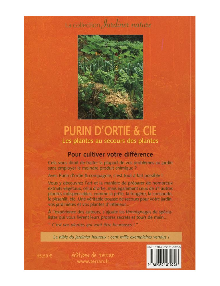 A l'expérience des auteurs, s'ajoutent les témoignages de spécialistes qui vous livrent leurs propres secrets et tours de main... «C'est vos plantes qui vont être heureuses !» Nouvelle édition augmentée de 16 pages avec en annexes «Qui a peur du purin d'ortie ?» et «Essais d'efficacité et témoignages».