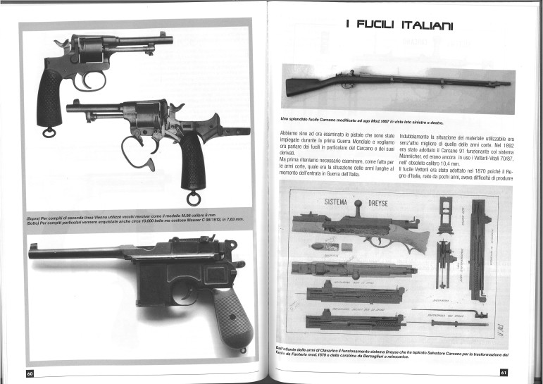 Pistolets : Modèles tels que le Glisenti Mod. 1910 et le Bodeo Mod. 1889.