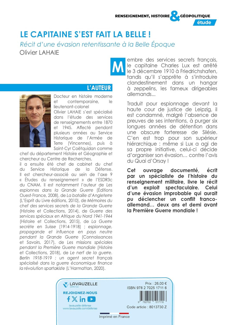 Cet ouvrage documenté, écrit par un spécialiste de l’histoire du renseignement militaire, livre le récit d’un exploit spectaculaire. Celui d’une évasion improbable qui aurait pu déclencher un conflit franco-allemand… deux ans et demi avant la Première Guerre mondiale !
