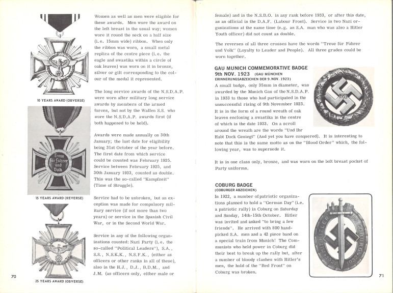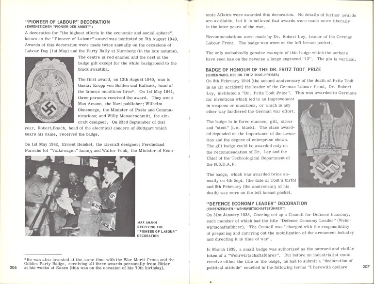 L'un des premiers bons ouvrages sur les distinctions allemandes, publié par Bender en 1968. 230 pages de recherche textuelle approfondie, avec des photographies en noir et blanc de toutes les distinctions militaires du Troisième Reich. Un ouvrage incontournable.