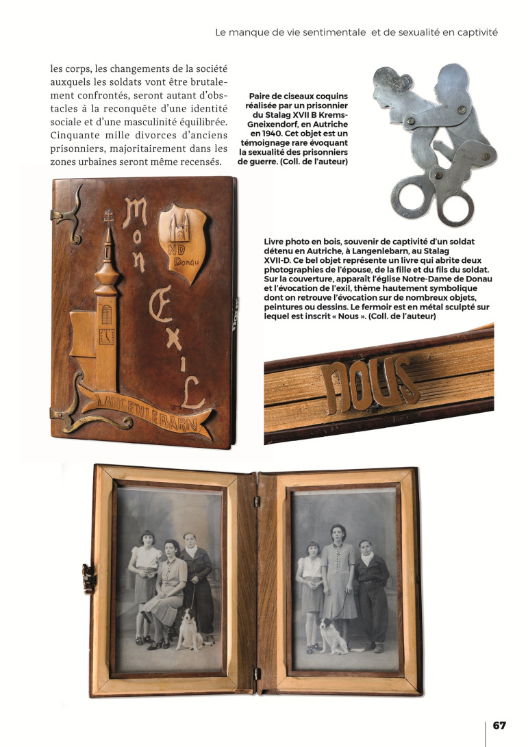 Les souvenirs de La vache et le prisonnier avec Fernandel sont souvent les seules images qui viennent à l’esprit quand on parle des soldats français prisonniers en 1940. Et pourtant loin du cinéma, 1,85 million d’entre eux ont été privés de liberté, enfermés loin de leur foyer et utilisés comme main-d’œuvre bon marché. Victimes d’une image tronquée et d’une histoire française qui s’est déroulée sans eux, les soldats captifs, authentiques victimes eux aussi, sont pour plusieurs raisons les grands oubliés de l’historiographie de la Seconde guerre mondiale. Grâce à des témoignages de prisonniers et de leurs descendants, une riche collection d’objets fabriqués dans des stalags, d’œuvres d’art, de documents et de photographies originales, cet ouvrage nous invite à mieux comprendre les ressorts d’une histoire méconnue qui a pourtant durablement marqué de très nombreuses familles françaises.