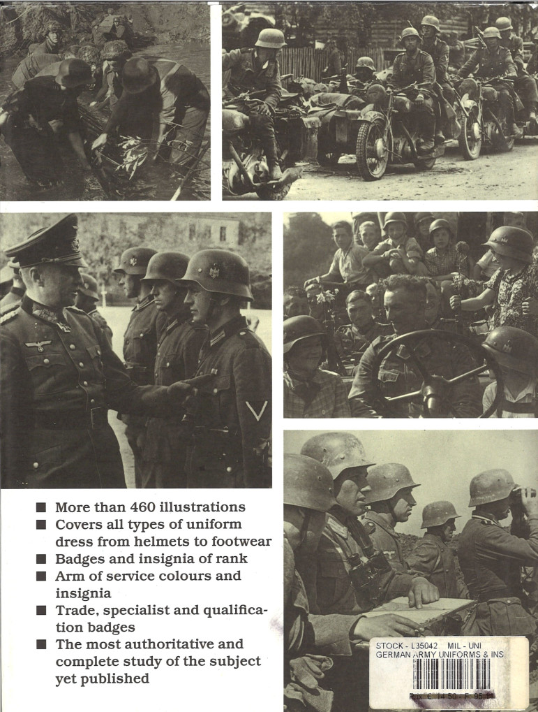 Un classique ! Couvre tous les uniformes, coiffures, insignes et équipements de l'armée de terre allemande, la Wehrmacht Heer, de 1933 à 1945. Une documentation très complète richement illustrée.