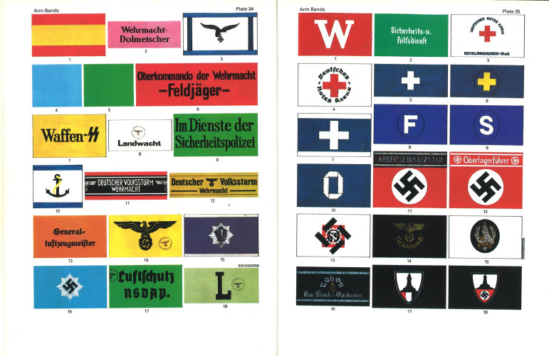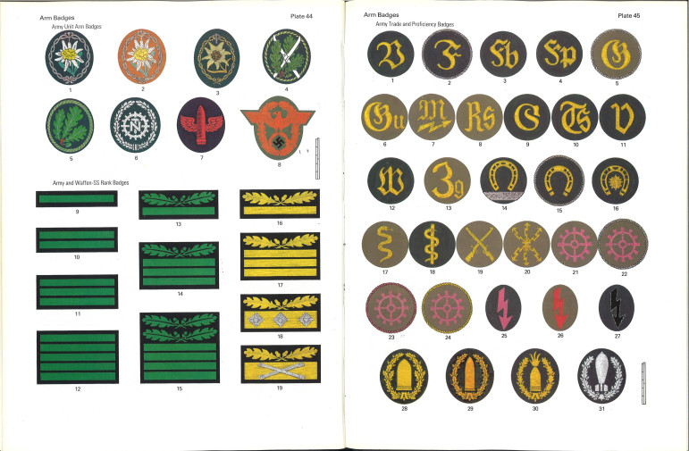 Tous les insignes et badges en tissu les plus importants utilisés par 64 formations allemandes différentes de 1933 à 1945.