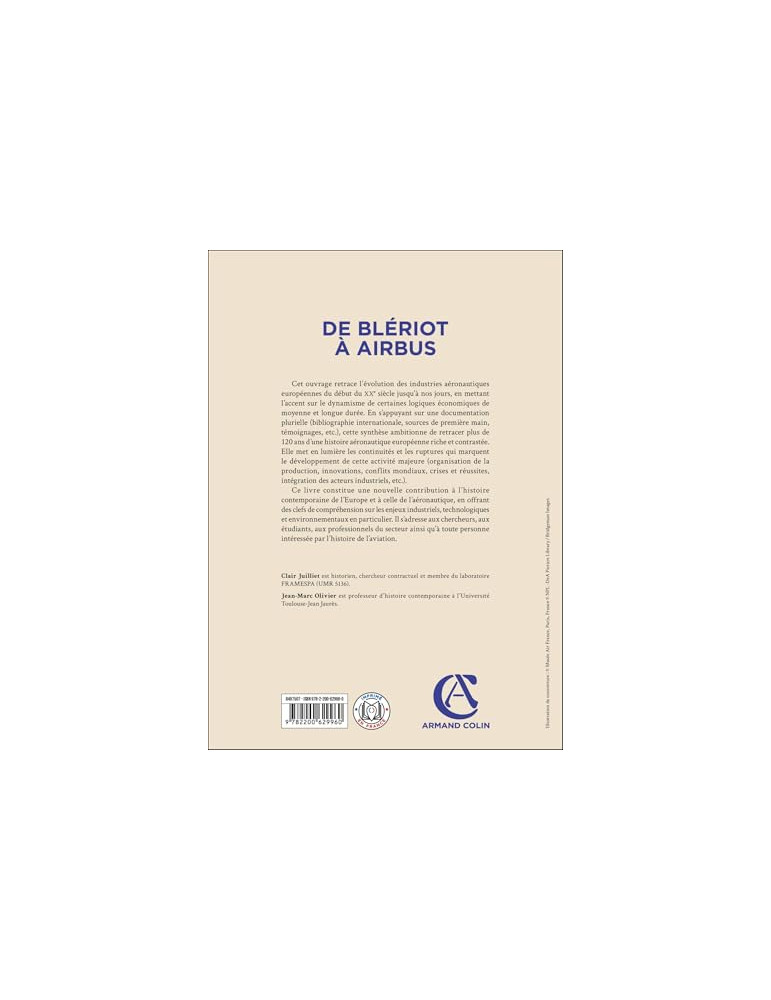 Cet ouvrage retrace l’évolution des industries aéronautiques européennes du début du XXe siècle jusqu’à nos jours, en mettant l’accent sur le dynamisme de certaines logiques économiques de moyenne et longue durée. En s’appuyant sur une documentation plurielle (bibliographie internationale, sources de première main, témoignages, etc.), cette synthèse ambitionne de retracer plus de 120 ans d’une histoire aéronautique européenne riche et contrastée. Elle met en lumière les continuités et les ruptures qui marquent le développement de cette industrie majeure (organisation de la production, innovations, conflits mondiaux, crises et réussites, intégration des acteurs industriels, etc.). Ce livre constitue une nouvelle contribution à l’histoire contemporaine de l’Europe et à celle de l’aéronautique, en offrant des clefs de compréhension sur les enjeux industriels, technologiques et environnementaux en particulier. Il s’adresse aux chercheurs, aux étudiants, aux professionnels du secteur ainsi qu’à toute personne intéressée par l’histoire de l’aviation.